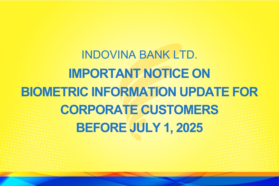 Indovina Bank Ltd. notice on biometric information update for corporate customers before July 1st, 2025.