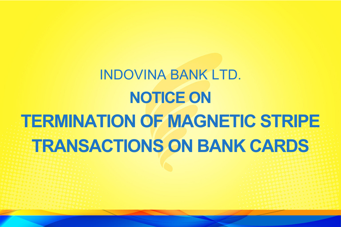 INDOVINA BANK LTD. NOTICE ON TERMINATION OF MAGNETIC STRIPE TRANSACTIONS ON BANK CARDS Indovina Bank Ltd. notice on termination of magnetic stripe transactions on bank cards.