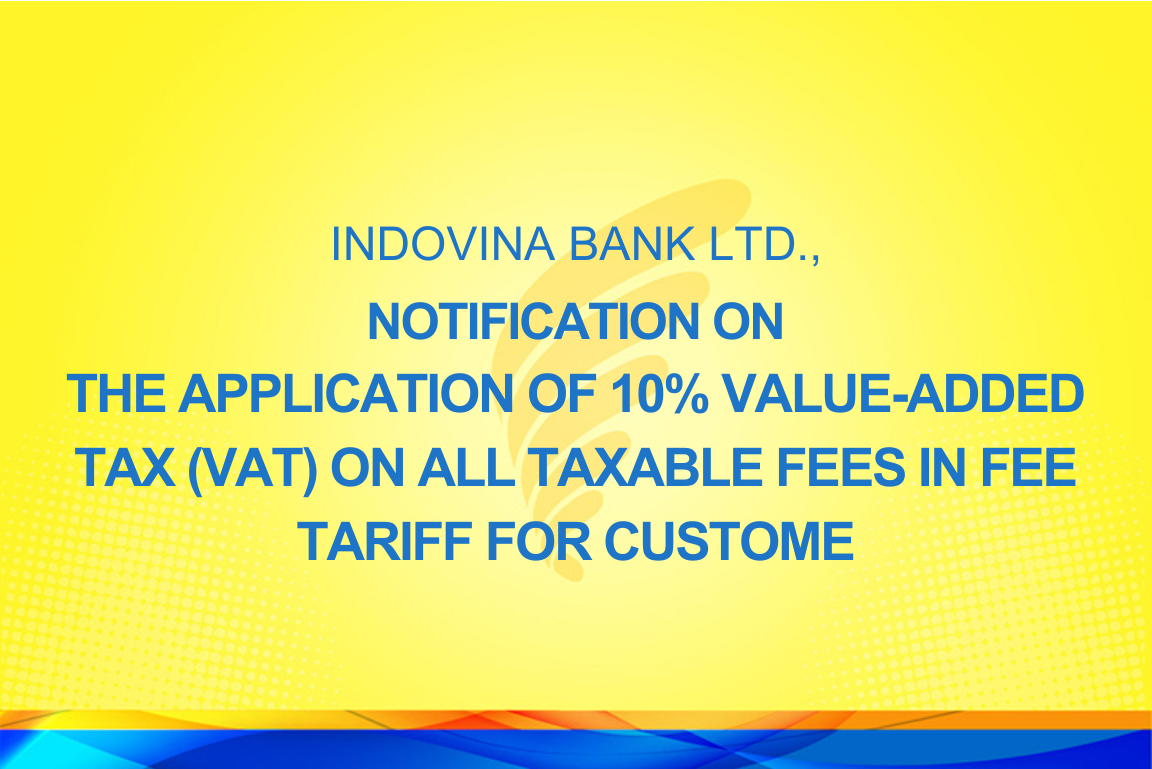 Notification on the application of 10% value-added tax (VAT) on all taxable fees in fee tariff for customer at Indovina Bank Ltd.