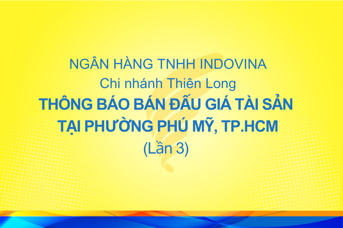 CHI NHÁNH THIÊN LONG - THÔNG BÁO ĐẤU GIÁ TÀI SẢN (LẦN 3)