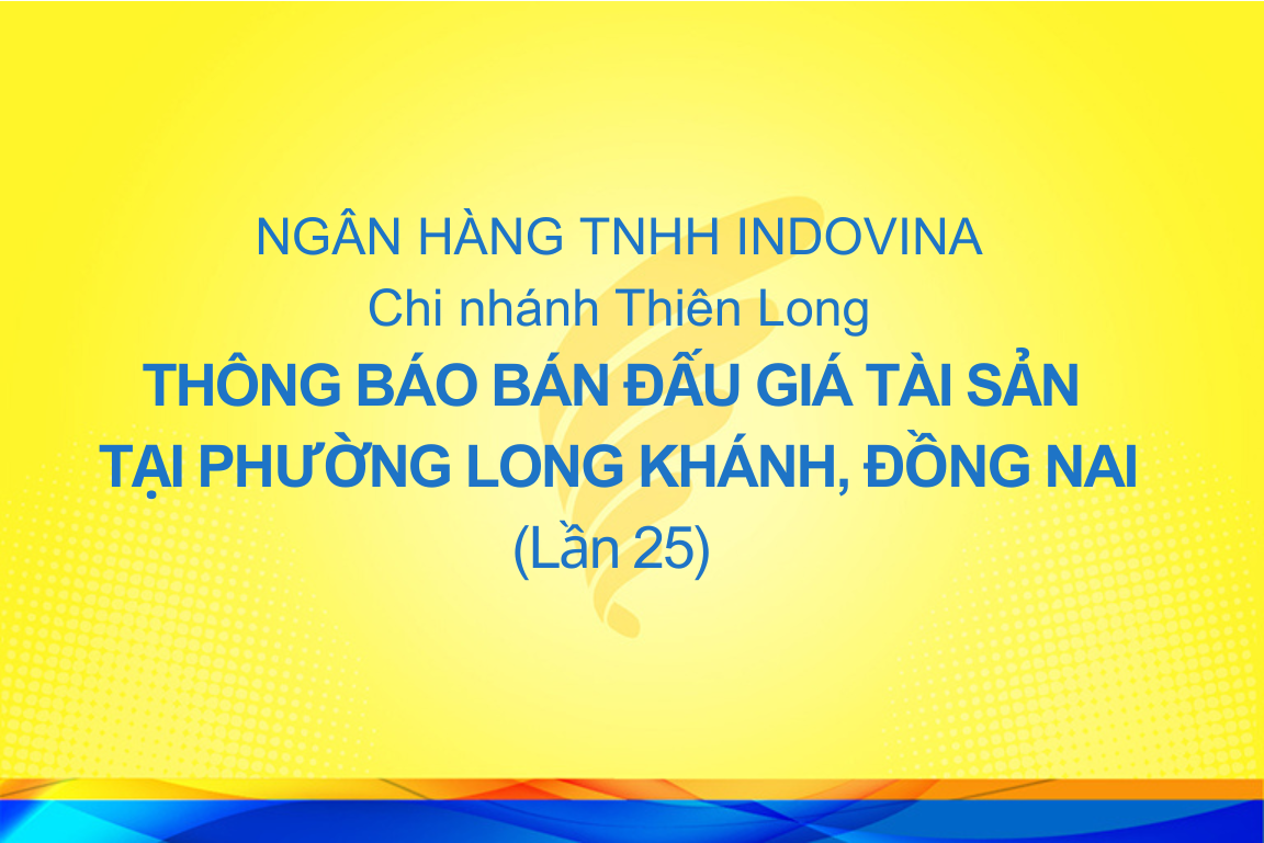 CHI NHÁNH THIÊN LONG - THÔNG BÁO ĐẤU GIÁ TÀI SẢN TẠI P. LONG KHÁNH, ĐỒNG NAI (LẦN 25)