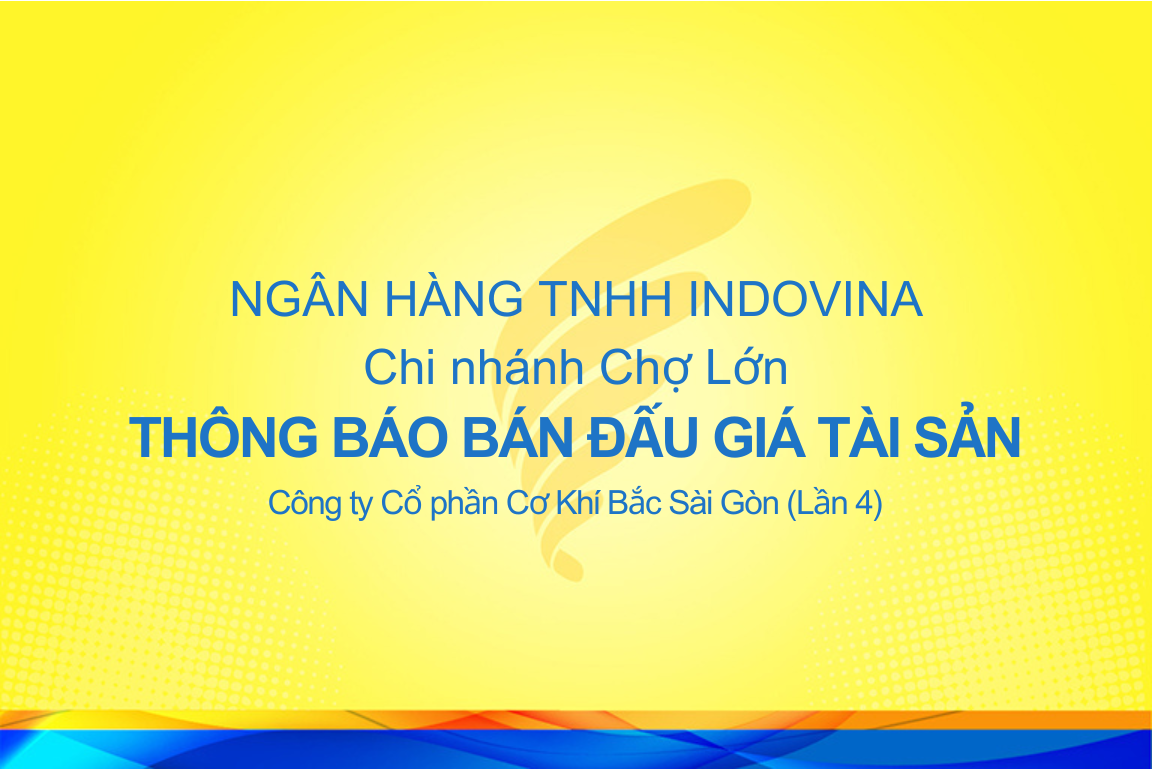 IVB CHI NHÁNH CHỢ LỚN - THÔNG BÁO ĐẤU GIÁ TÀI SẢN (LẦN 4)