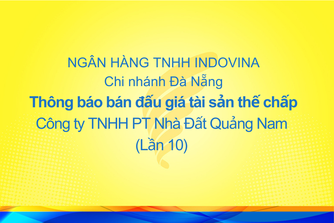 CHI NHÁNH ĐÀ NẴNG THÔNG BÁO BÁN ĐẤU GIÁ TÀI SẢN THẾ CHẤP (LẦN 10)