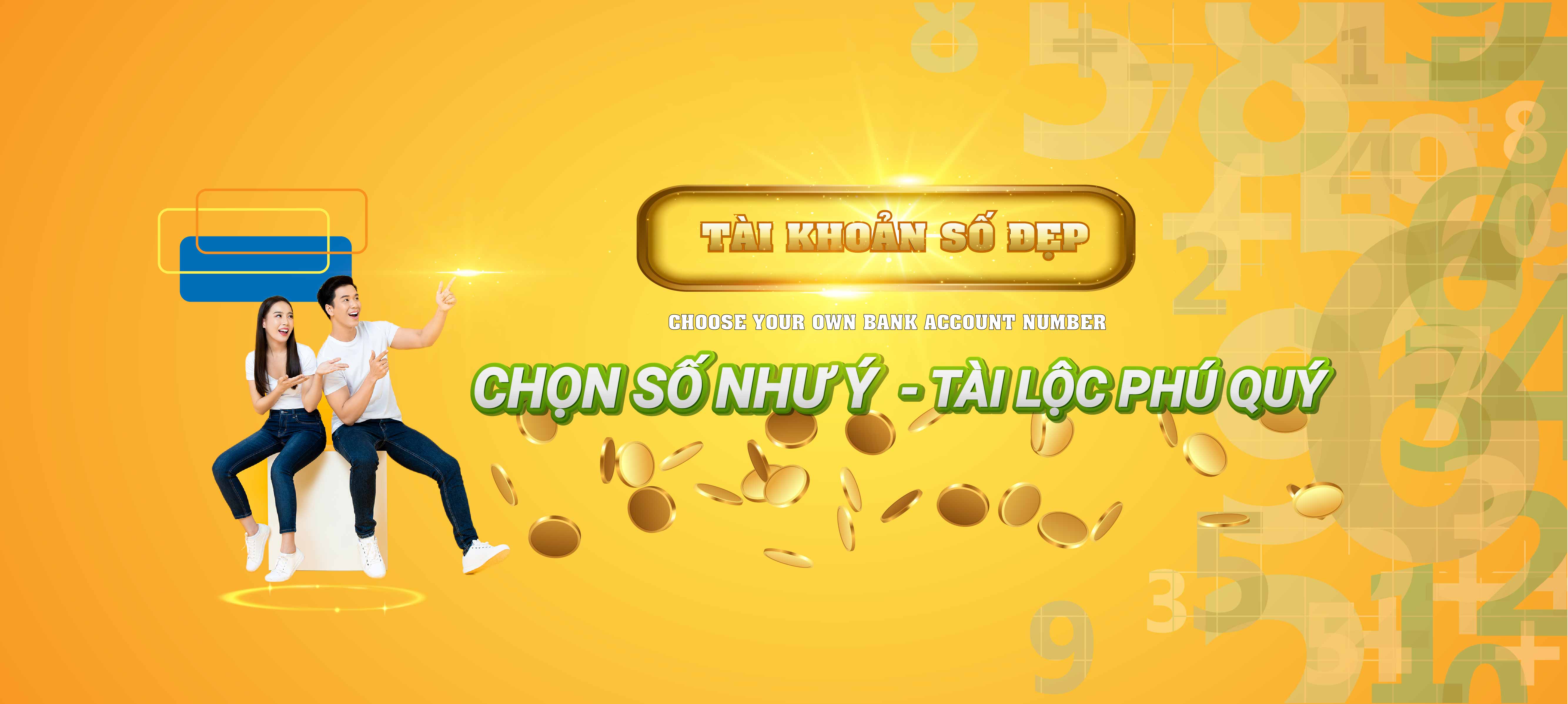 Từ nay, Khách hàng đã có thể thoải mái lựa chọn các số tài khoản theo phong cách cá nhân, phù hợp với nhu cầu sử dụng: Dễ nhớ, kinh doanh, phong thuỷ, tài lộc, …
